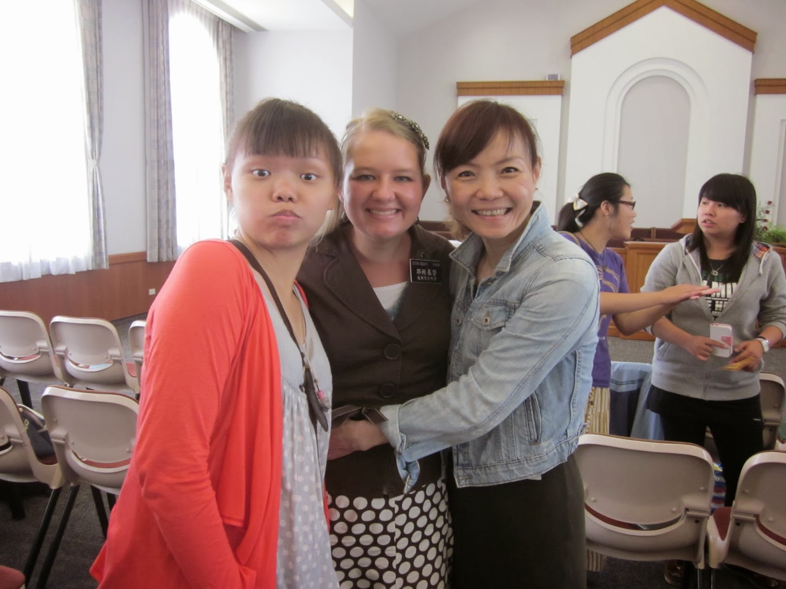 Me, Ramela and Sis. Horton: Ramela is from the Philippines and is in Taiwan working. She wasn't able to come to church because she works on Sundays and can't leave the grandma she takes care of alone, so we would go to the park every week and visit her.